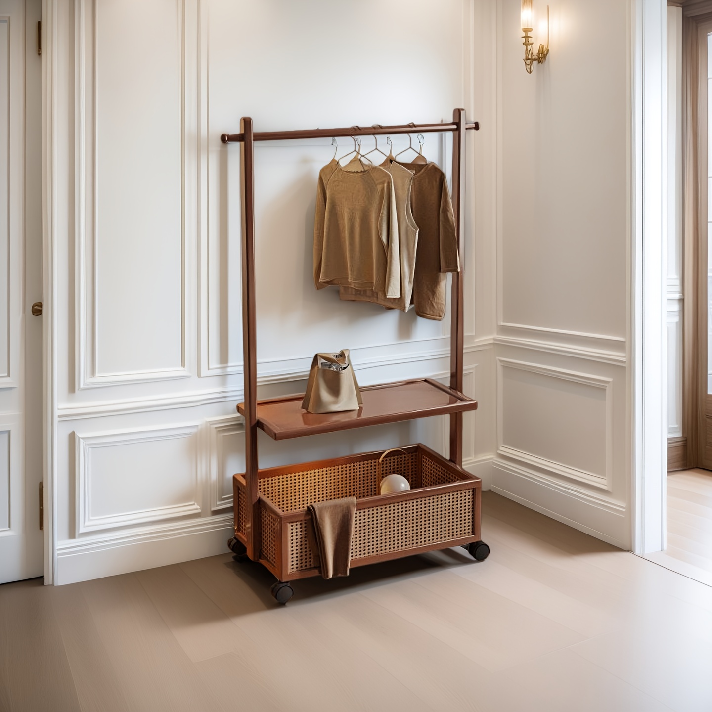 레트로 스타일 나무 코트걸이